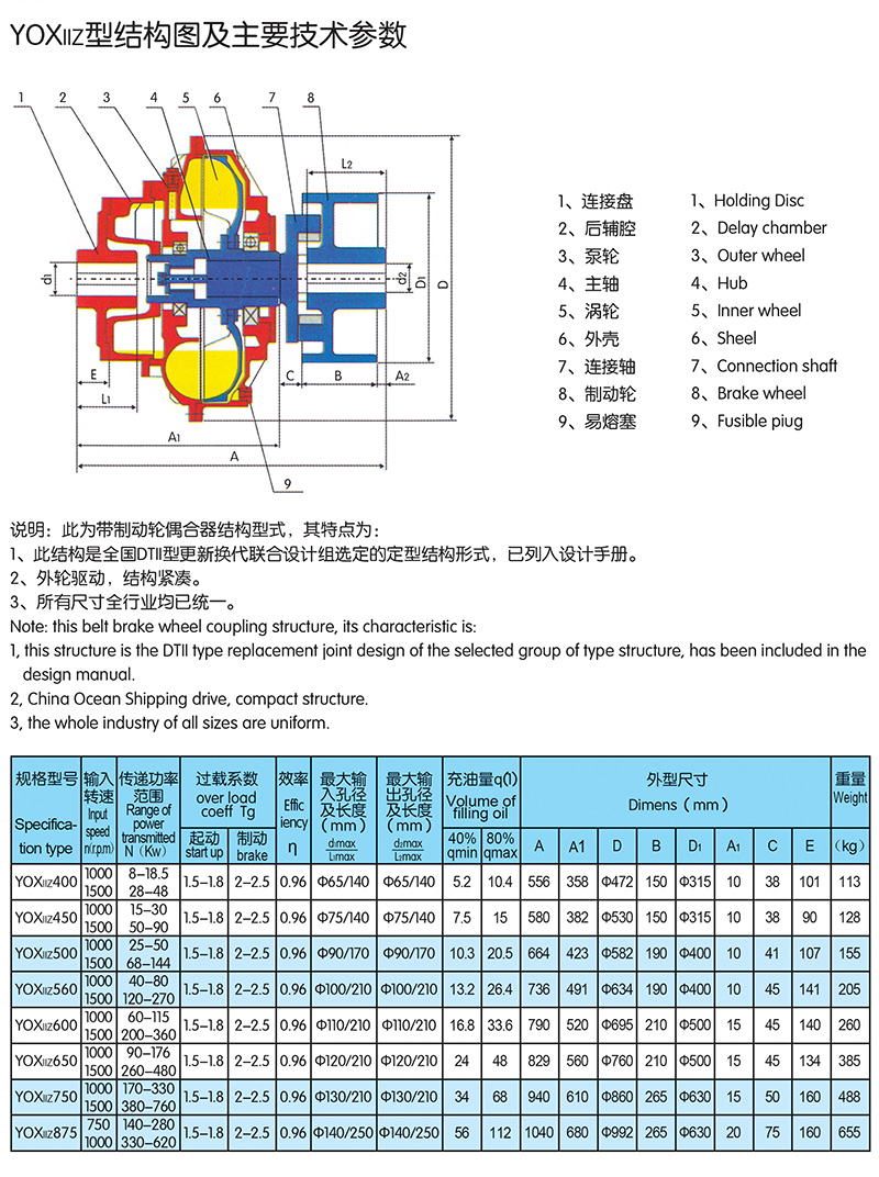 限矩型液力偶合器是一種動(dòng)力式液力傳動(dòng)元件,它具有過(guò)載保護(hù)作用,能隔離扭振和沖擊,在多臺(tái)電動(dòng)機(jī)傳動(dòng)鏈中均衡各電動(dòng)機(jī)的負(fù)荷,并減小電網(wǎng)的沖擊電流。在礦山機(jī)械、化學(xué)工業(yè)、治金工業(yè)、食品、建筑、交通等部分得到了廣泛應(yīng)用。 限矩型液力偶合器具有以下特點(diǎn):效率高,結(jié)構(gòu)簡(jiǎn)單,能夠帶動(dòng)負(fù)載平穩(wěn)起動(dòng),改善起動(dòng)性能,提高起動(dòng)能力。 具有過(guò)載保護(hù)作用。能隔離扭振和沖擊。在多臺(tái)電動(dòng)機(jī)傳動(dòng)鏈中均衡各電動(dòng)機(jī)的負(fù)荷。并減小電網(wǎng)的沖擊電流。